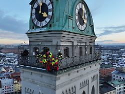 Beim Abstieg von einem Kirchenturm in München stürzt eine 35-Jährige schwer. Ihre Verletzungen sind so gravierend, dass die Frau nicht über das Treppenhaus gerettet werden kann. Höhenretter müssen sie über eine Seilrutsche transportieren.